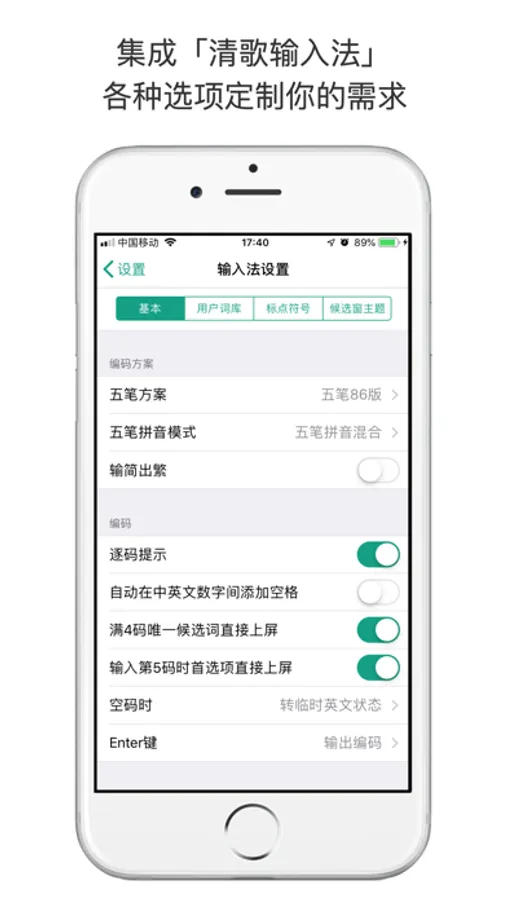 (3) 另外还可以下载安装「清歌输入法」iOS版,用触屏打五笔,习惯后同样可以做到非常快速高效。