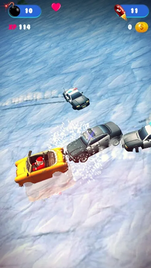 When you ride on the ground, you have to collect the Heart, Ex point, Point, Christmas Balloons, Christmas Stars, etc... to complete the challenging missions and also win the Coins. Coins can be used to unlock the car and also you can become the destroyer.