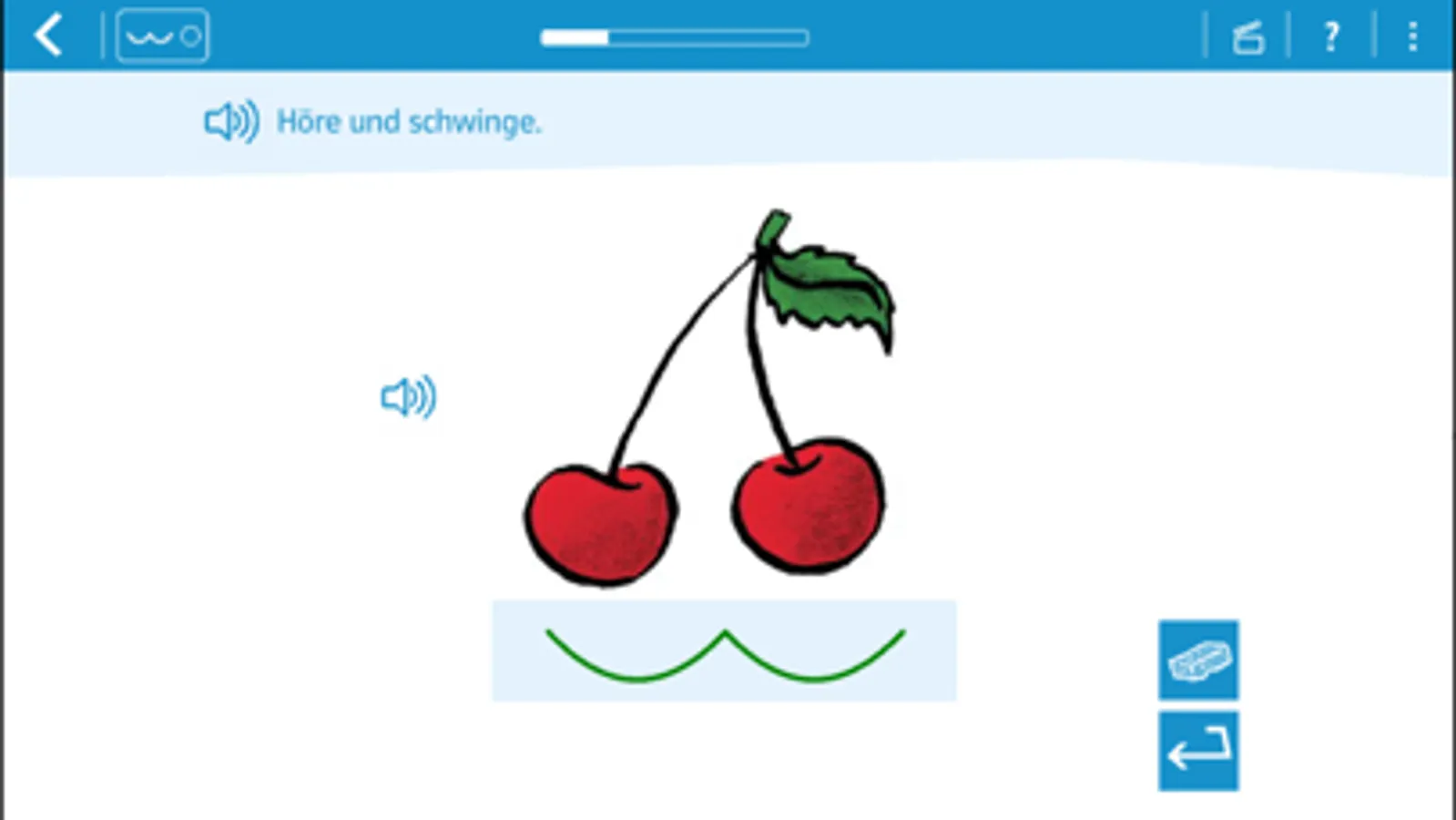 Hier werden Wörter geschwungen und dann mit Hilfe der Schreibtabelle geschrieben. Falsche Schreibungen werden korrigiert.