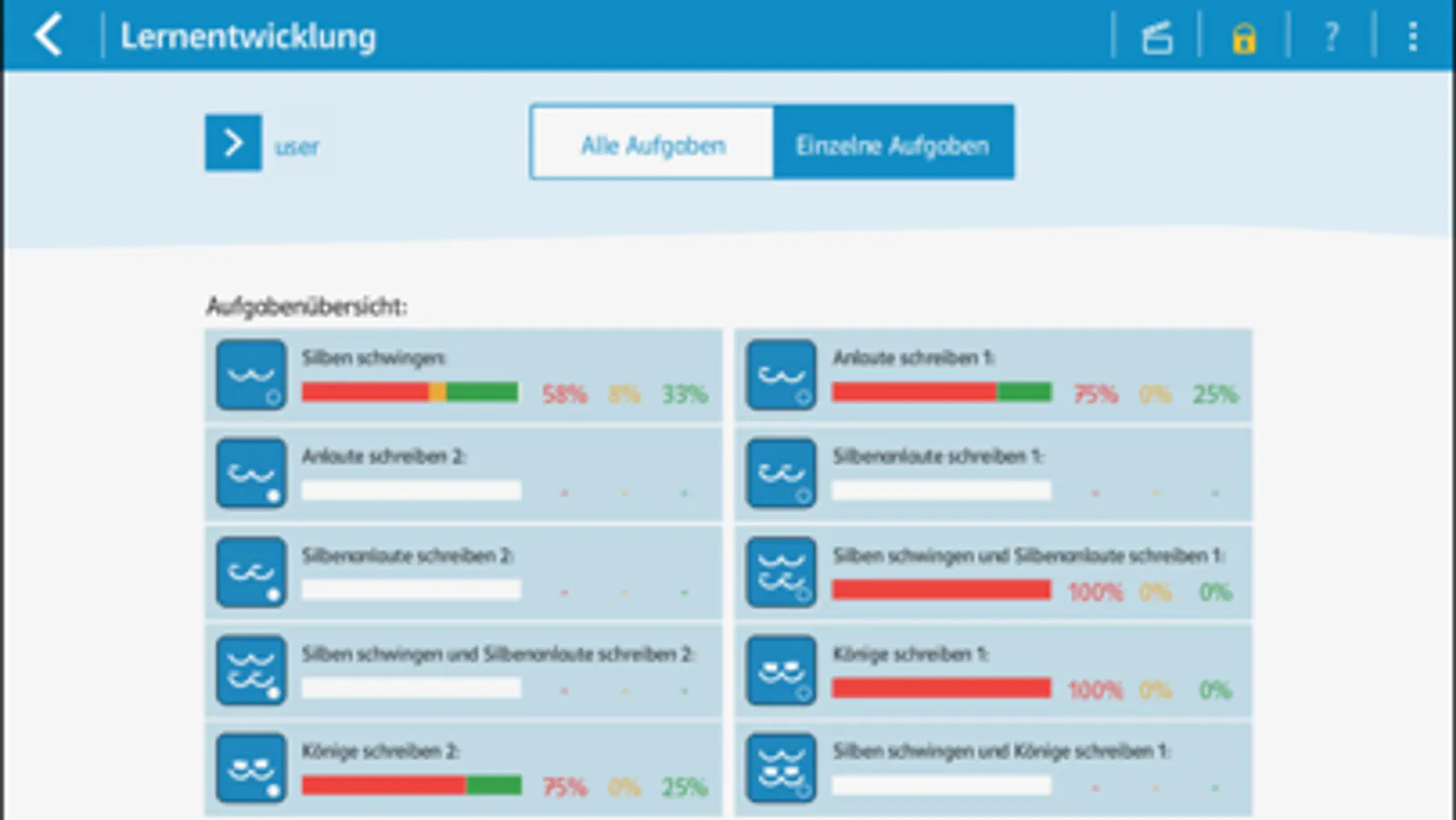 - detaillierte Auswertung für Lehrer und Eltern als Grundlage zur Förderung