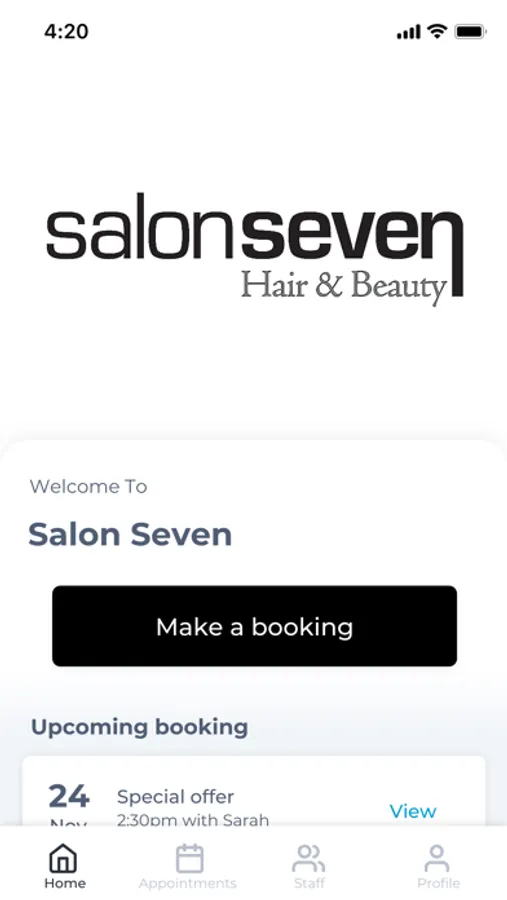 The Salon Seven app makes booking your appointments and managing your loyalty points even easier. You're just a few taps away from feeling good and looking great!