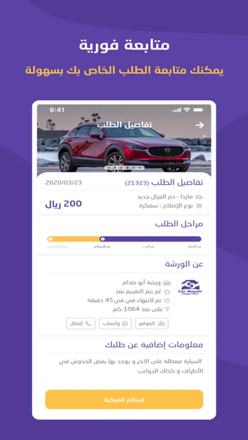 تستلم الإشعارات لحظة الإنتقال لمرحلة جديدة في إصلاح المركبة الخاصة بك .