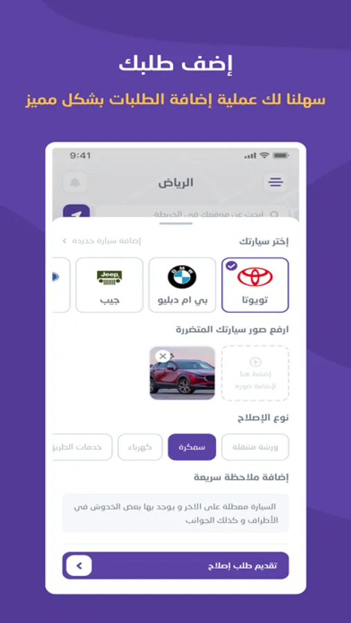 برنامج إصلاح أبسط طريقة لإصلاح المركبات حيث يقوم بالتعامل مع الورش وإقامة عروض أسعار للمستخدم حيث يلقى أفضل الأسعار