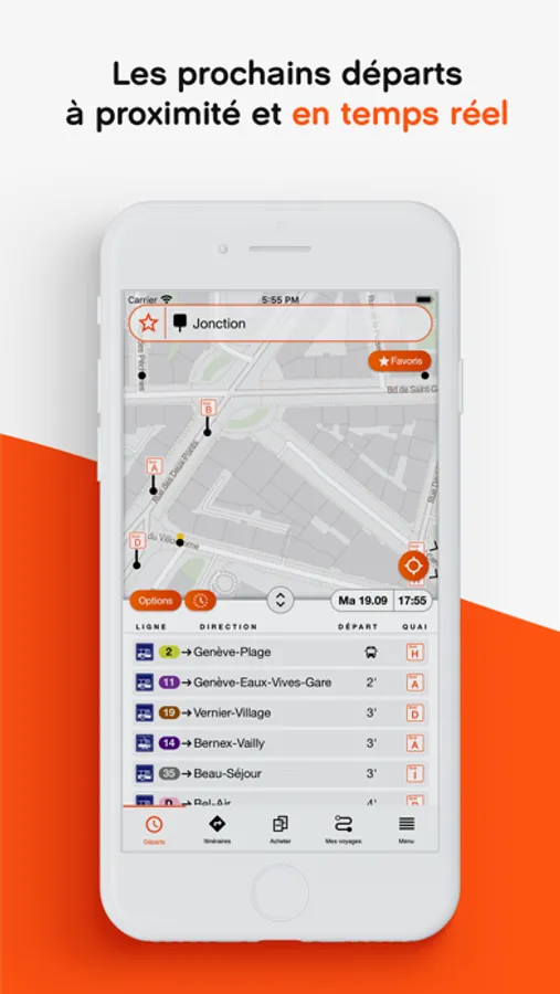 • Immediately see the next departures in your vicinity