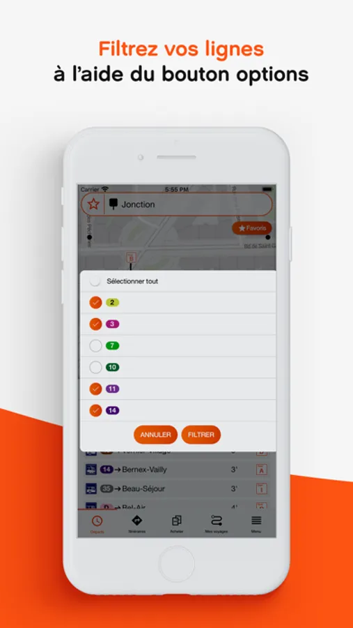 • Directly on the map in "Departures" (top right): manage your favourite stops