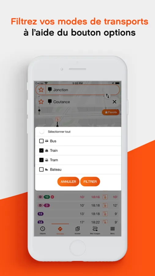 • Filter your preferred modes of transport with the "Options" icon