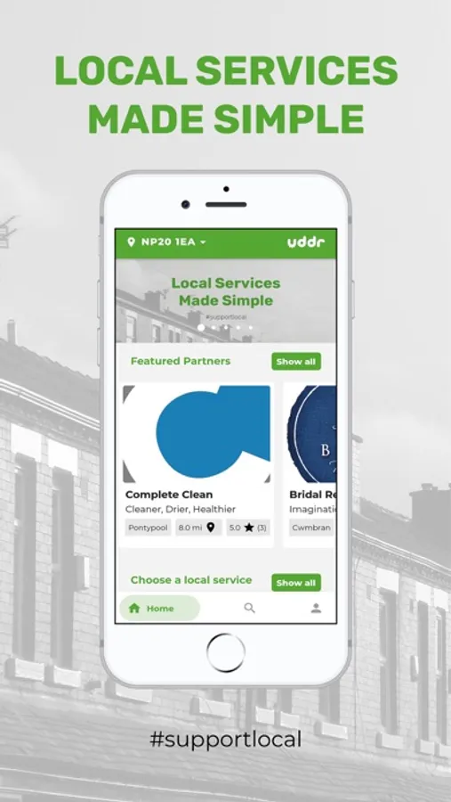 Go local - Support your local tradespeople, cleaners or gardeners and more. From windows to weddings or plasterers to poets, uddr makes supporting local businesses a doddle.