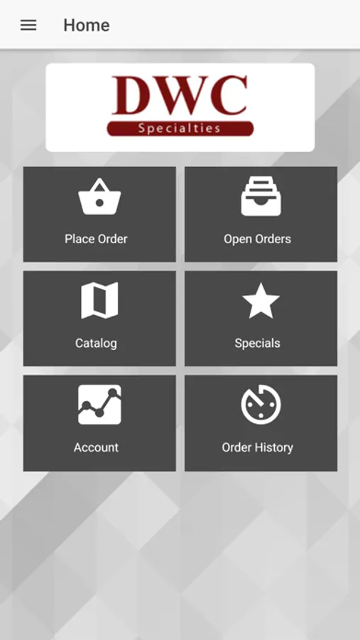 The DWC Specialties app is designed for speed which allows customers to freely place orders from mobile devices and tablets. Additionally customers will be able to view products, order guides, orders history and account details.