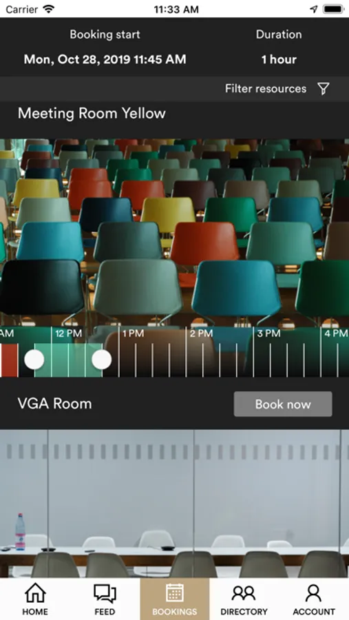 Reserva salas de reuniones o espacios de trabajo según necesites.