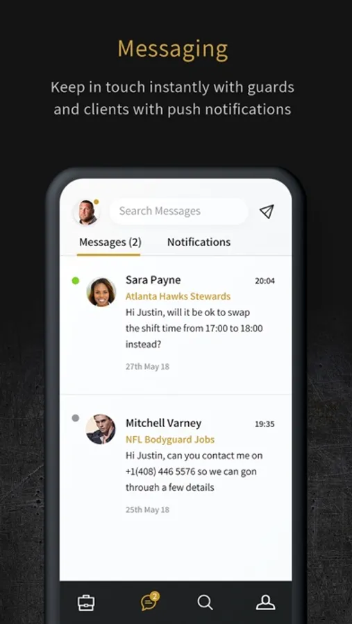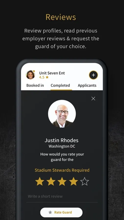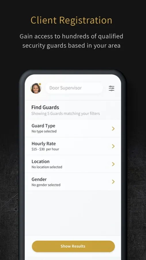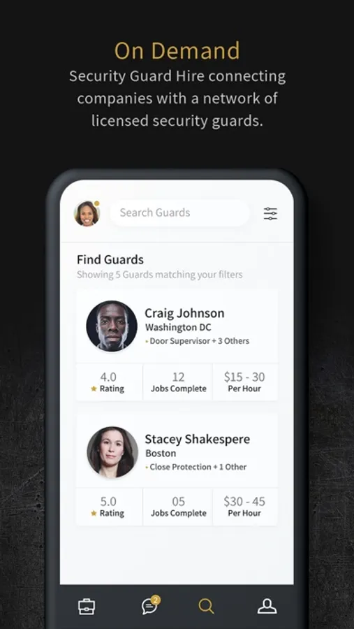 Clients in need of security cover can easily connect with and view profiles of licensed and available security guards in close proximity.