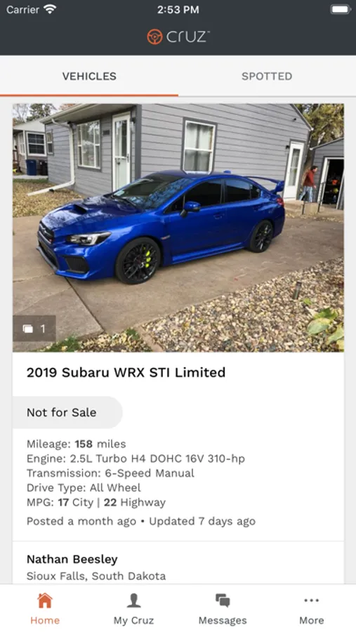 My Cruz: Manage your cars, your way, in your personal vehicle portal. Not only can you see tons of manufacturer details and specs on your cars, you also get free vehicle history reports! Add photos, notes, and more!