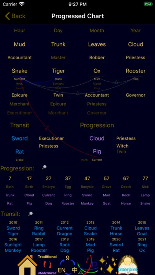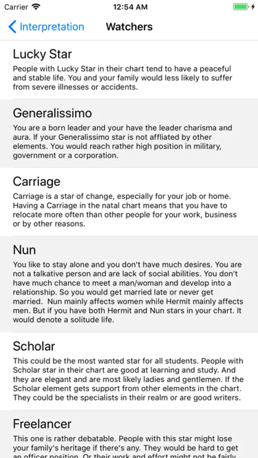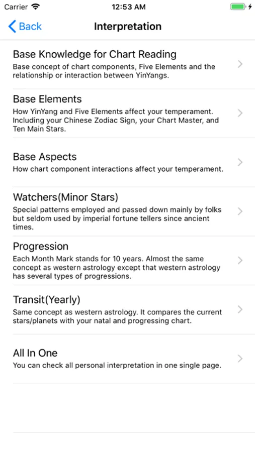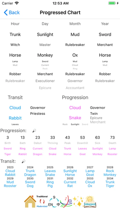 We saw that although there are many Four-pillar apps on the App Store. But we could not find one that is by any means translated into English or modernised. We started this project from scratch and we tried hard to look for a counter part of the symbols in English and in the western world. Later we translated or re-wroted some of the ancient interpretation text into English so that everyone can enjoy the art. And I employ as many astrology terms as possible so that you Google it if you are not familiar with the term.