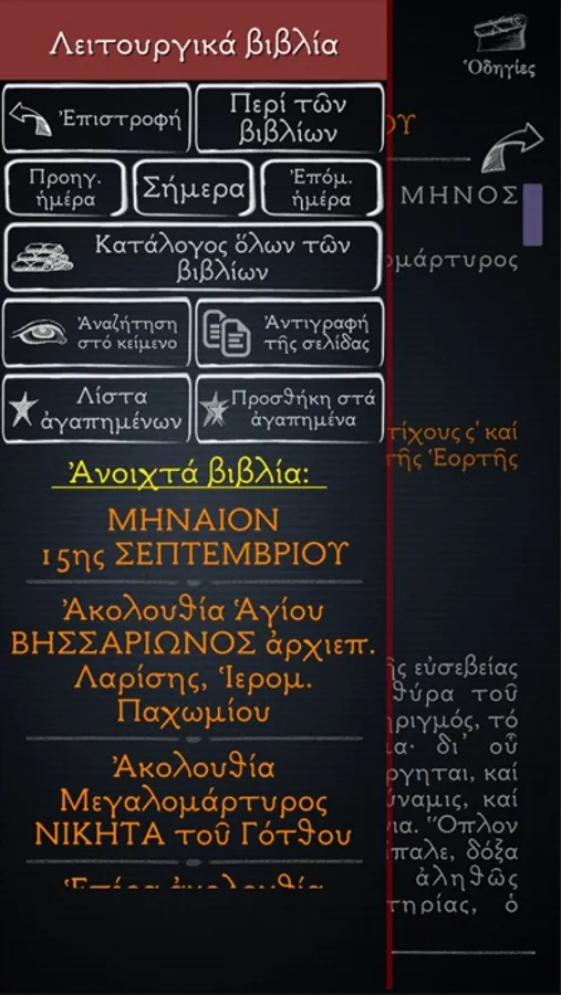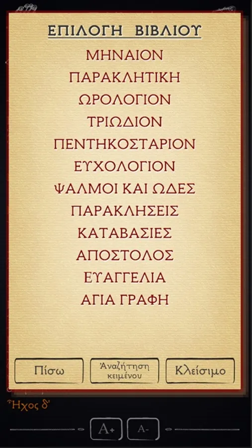 -Δυνατότητα αναζήτησης κειμένου (λέξη ή φράση) μέσα στα λειτουργικά κείμενα και την Αγία Γραφή