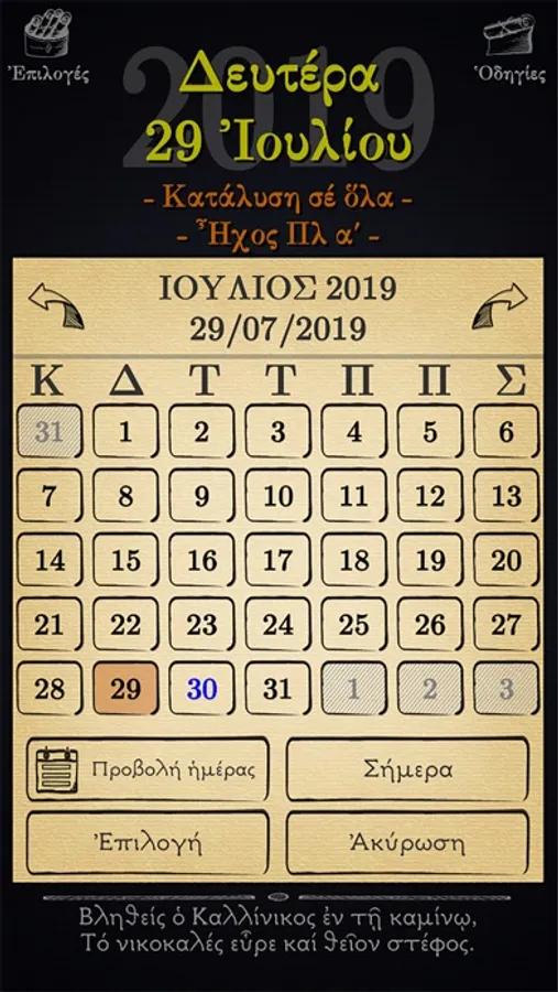 -Δυνατότητα επιλογής του Παλαιού (Ιουλιανού) Ημερολογίου.