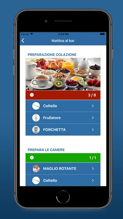 - task assigned to the individual user with textual description of the activity in high comprehensibility, accompanied by checklists (with tips) with photos and / or videos of each activity