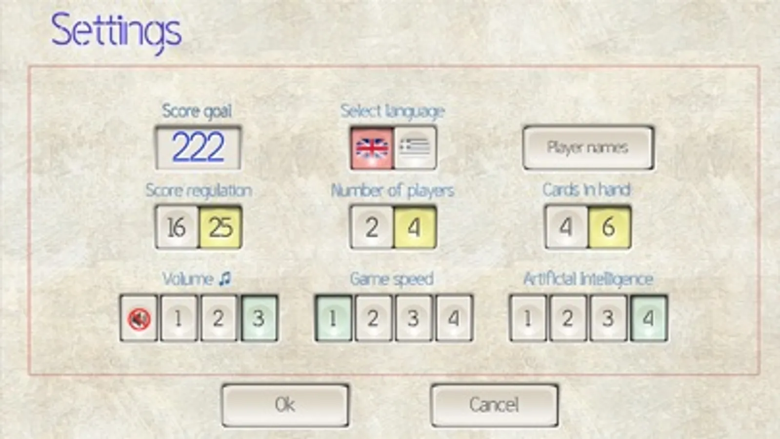 -The difference between the levels of difficulty has nothing to do with the way the computer plays (for example, it does not deliberately let you win and it does not cheat on you) but only with how many cards it remembers from what has been played. Thus, at the maximum level, the computer will remember all the cards that have been played, so it will never make a mistake, and as the level gets lower, the potential mistakes are increased.