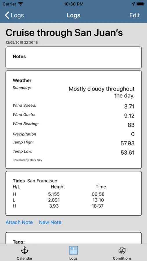 Sailing away on the weekend is the enjoyable part of enjoying a boat. But everyone knows to get there successfully takes countless days of hard work. Maintenance, upgrades, and planning can be a difficult process. This app helps take some of the legwork out by assisting in tracking and conditions planning.