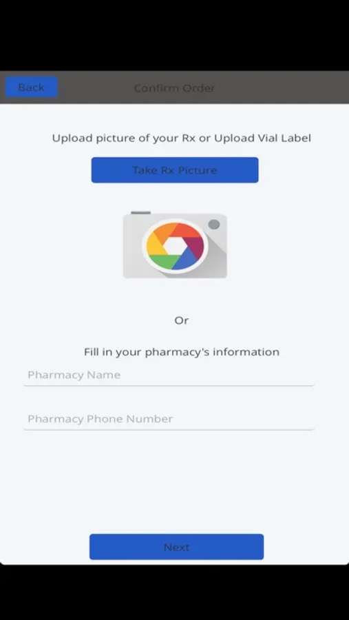 App takes picture of the prescription and instantly sends it encrypted to your pharmacy.