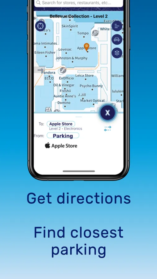 + Easily reverse your route to quickly get back to where you entered the mall or parked.