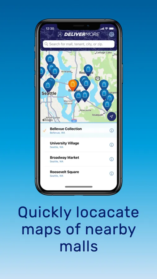 Get in and out of any mall as quickly as possible with DeliverMore. The less time spent inside, the more money you’re making. Quickly and easily find the best parking spot and the fastest route to and from any store in over 1,500 North American malls with our proprietary maps and routing.