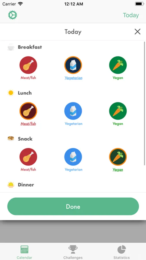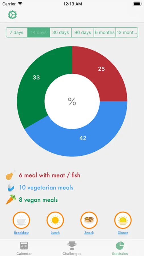 Did you eat meat yesterday afternoon? A vegan breakfast this morning? Put your meals in one click to see your statistics and follow the evolution of your eating habits.