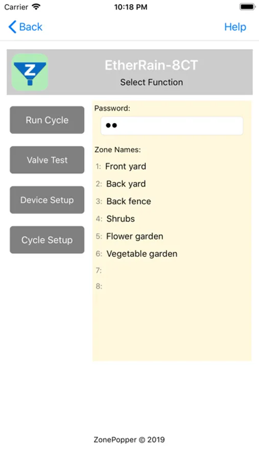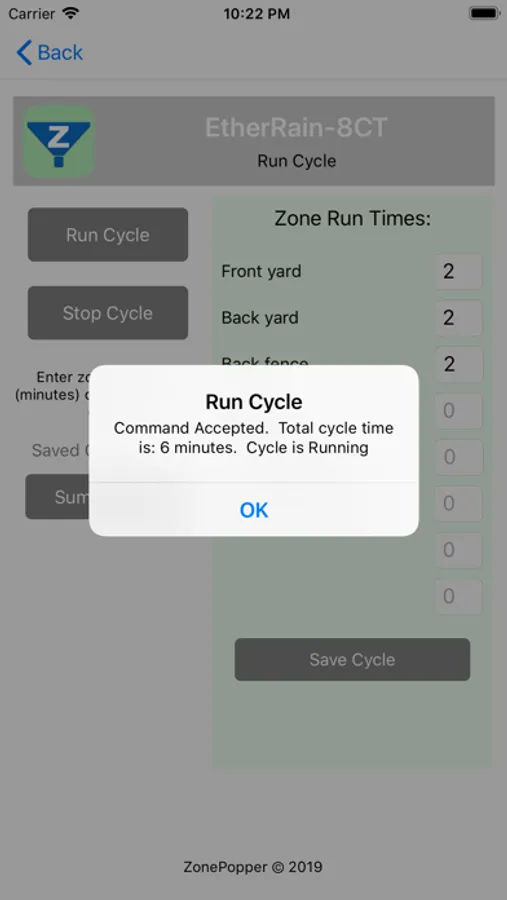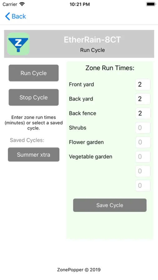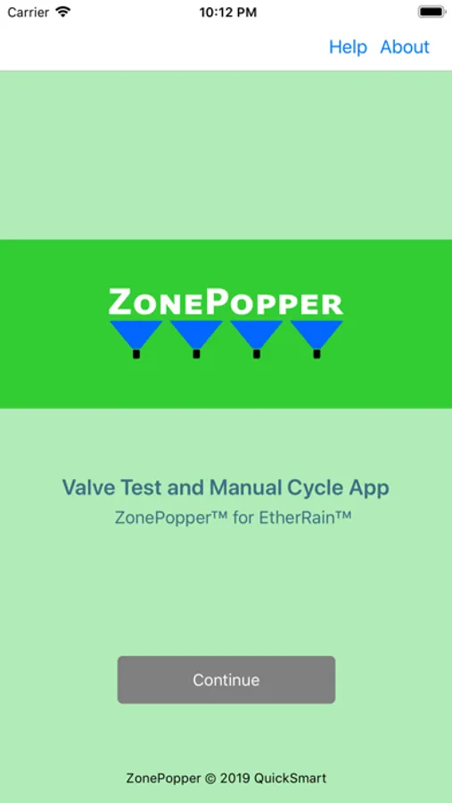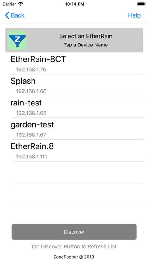 To use ZonePopper your iOS device must be connected via to the WiFi network that your EtherRain controllers are attached to.