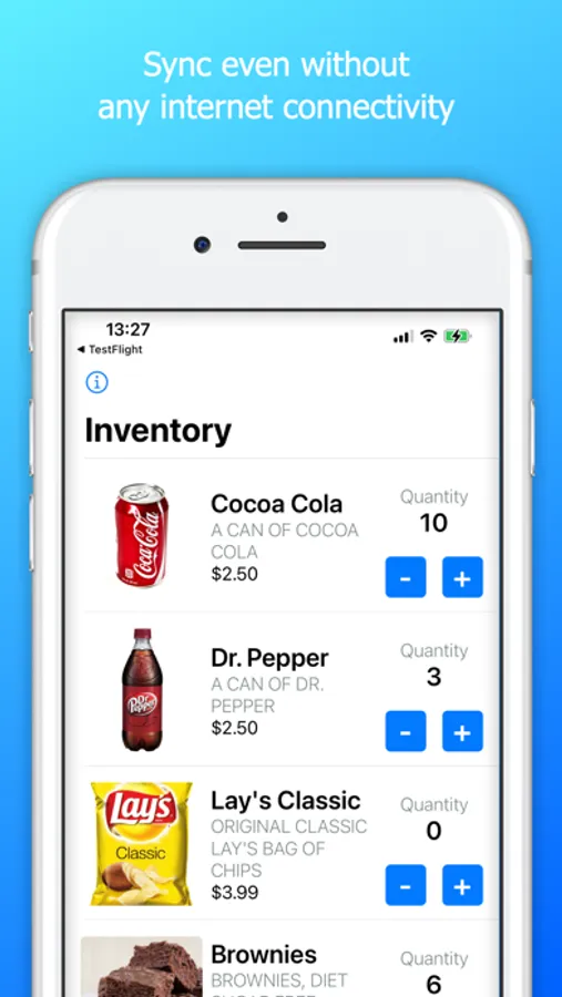 Synchronize inventory with other devices. This is the perfect app for commerce, airline meal order, or any inventory management application.