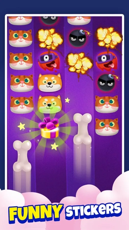 "Tap To Clear" is a simple and easy to use match blast game. You only need to click on the screen brick vacancy to eliminate a whole row of bricks. These bricks are made up of cute cats and dogs, and they are different. There will be different expression changes in the state, very cute and interesting. Each elimination of a row can accumulate a certain amount of energy, and when the energy value is full, it can trigger an inspiring full-screen elimination effect.