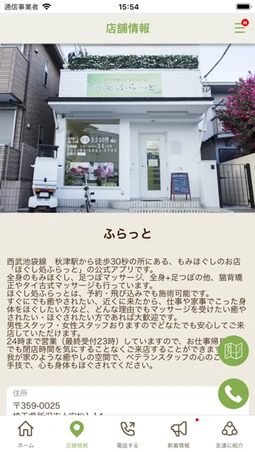 アプリを通して「ほぐし処ふらっと」の新着情報やお得な情報をリアル