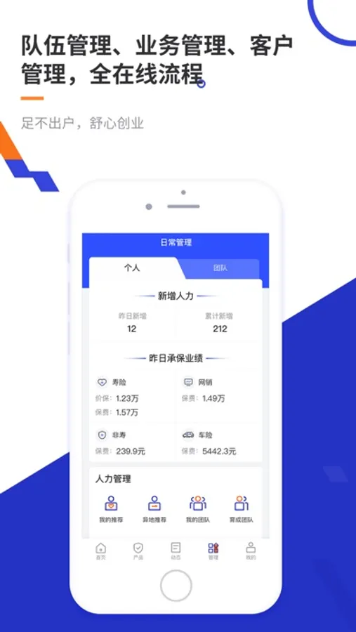 4、团队管理线上操作,平台创业,自建团队,线上增员,不考核,不清退。