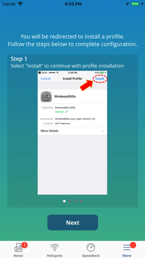 The App aids the 1-time secure setup to connect to Wireless@SGx network.