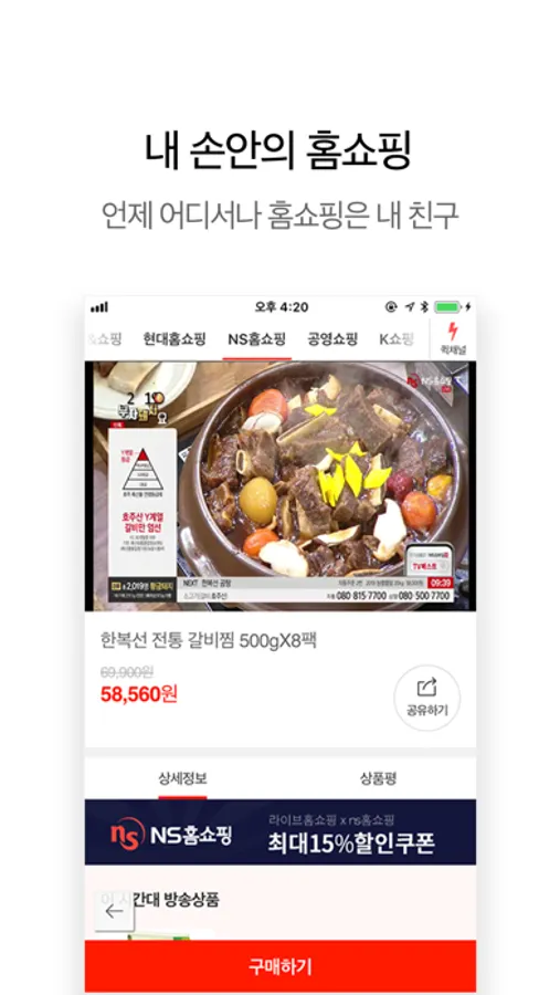 - 국내 모든 홈쇼핑 생방송과 정확한 편성표를 실시간으로 모아 한눈에 보고, 추가할인/적립 혜택으로 바로 구매할 수 있는 홈쇼핑 원스탑 서비스입니다.