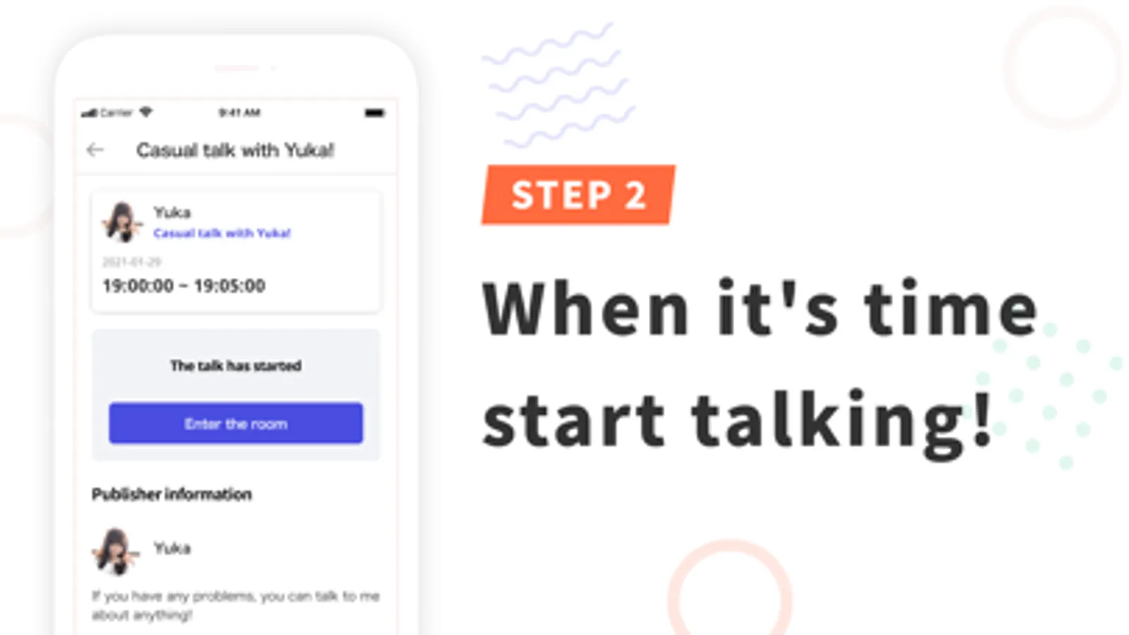When it's time, enter the room and start talking. Enjoy talking privately with your idols.