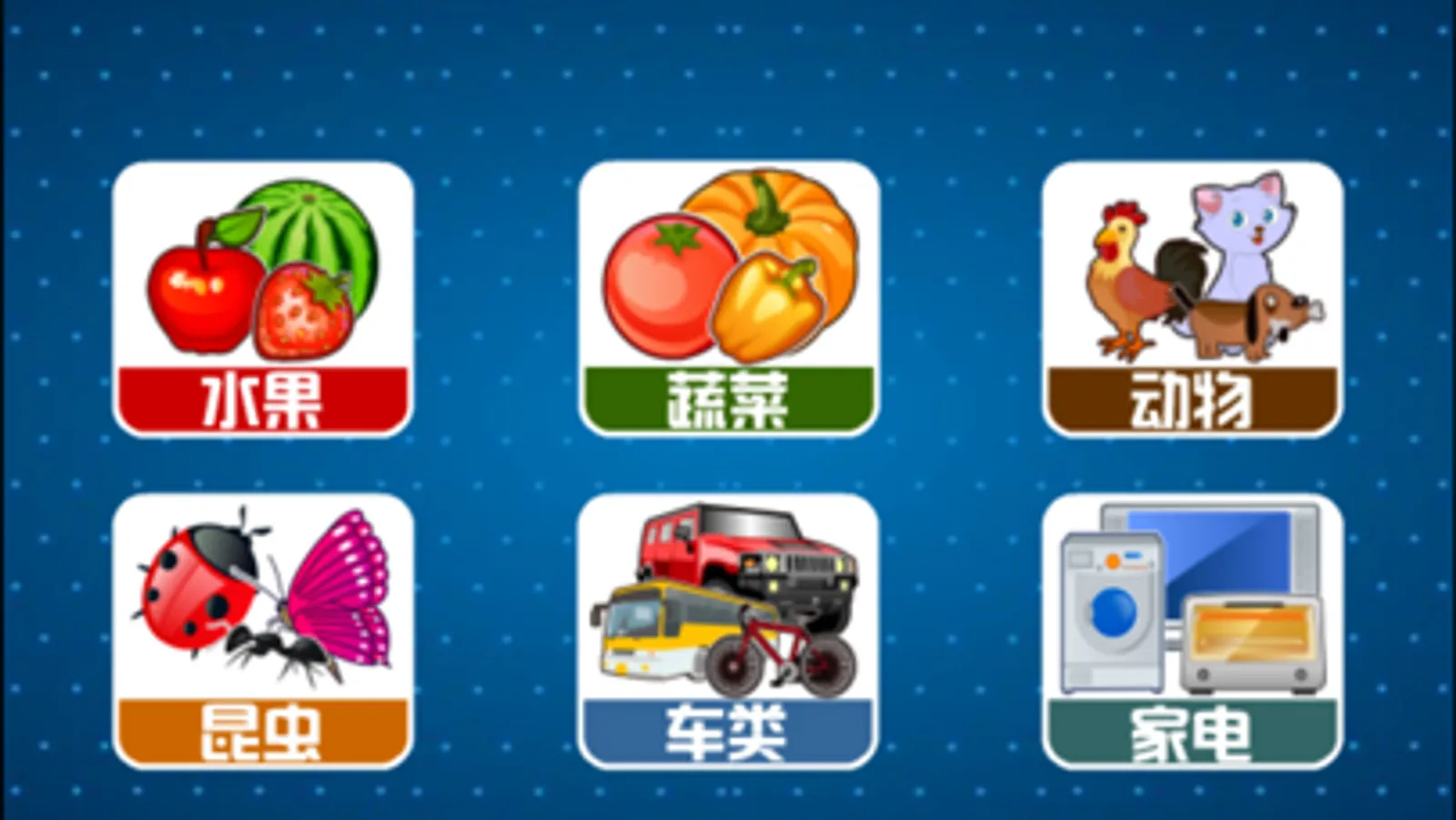 看图识物:看图认识水果、蔬菜、动物、昆虫、车类、家电,点击图片会读出该图片的名称,益智认知早教识图卡大全。