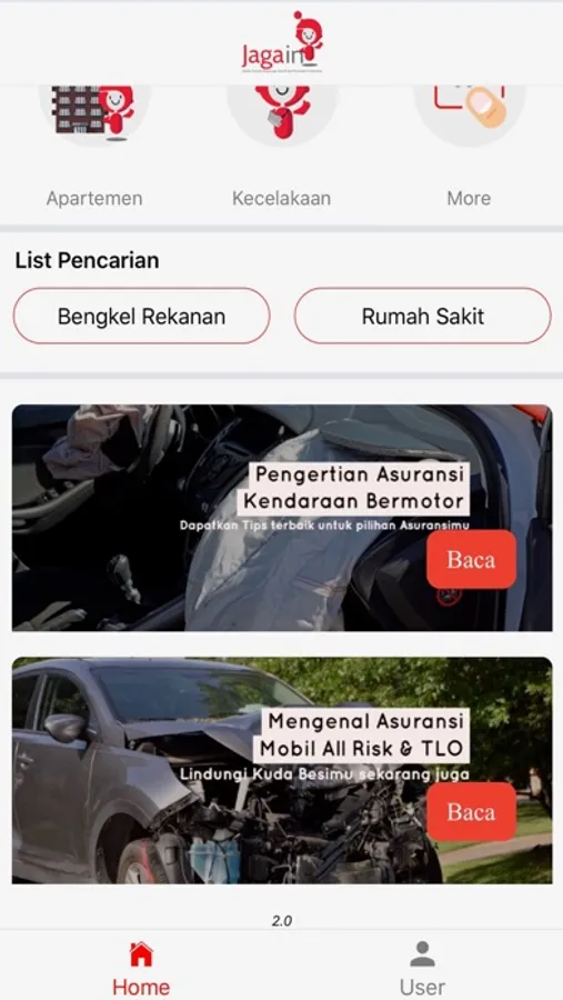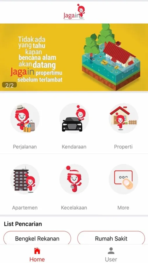 Jagain telah bekerja sama dengan berbagai perusahaan asuransi untuk menyediakan opsi-opsi perlindungan untuk kesehatan, kendaraan, properti, kecelakaan diri, jiwa dan perjalanan. Pelanggan cukup mengisi data diri dan memilih dari berbagai pilihan asuransi yang ada.