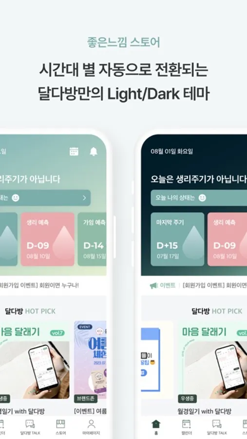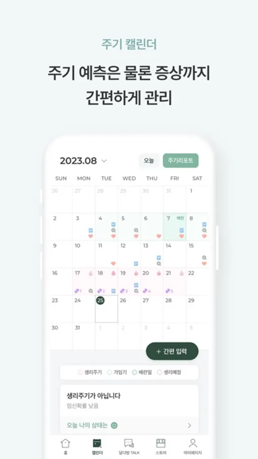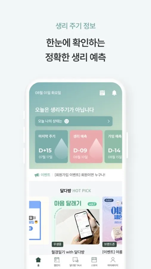 한달 주기로 반복되는 생리! 이제 달다방으로 관리를 시작하세요.