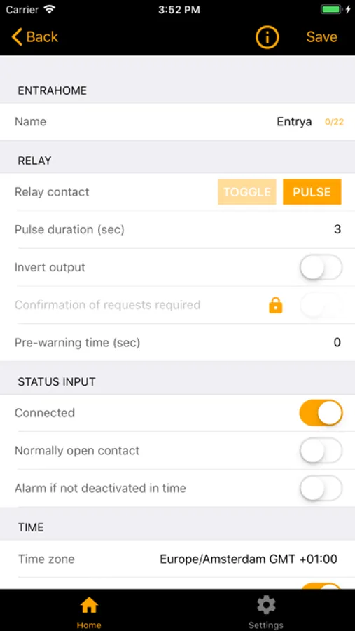 The EntraHOME app works in combination with the EntraHOME controller, also available at Entrya. Certain functions depend on the chosen subscription. More information can be found in the app or at https://entrya.com.