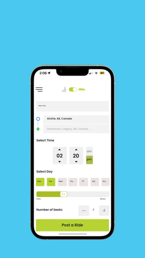 • Drivers can select the radius of which they are willing to pick up and drop off passengers.