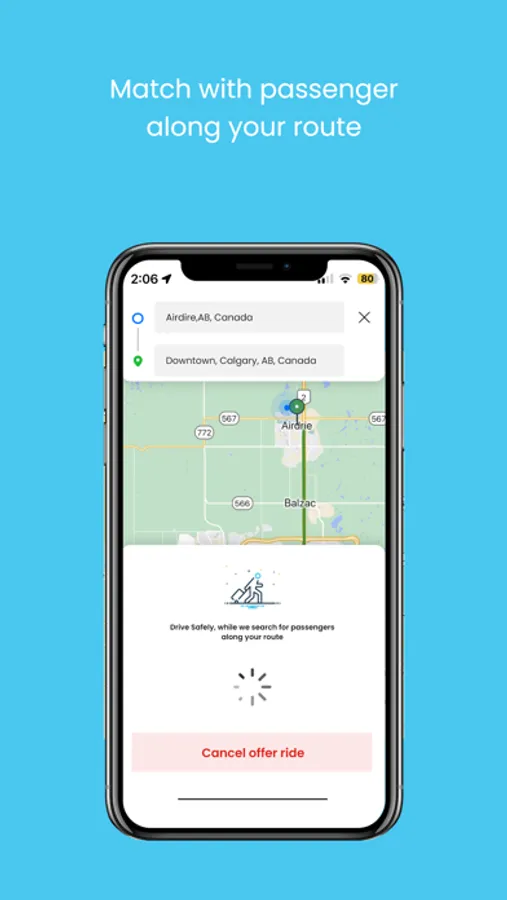 • Once a match has been found, the app will notify the driver. The Driver then chooses whether to offer or decline a seat.
