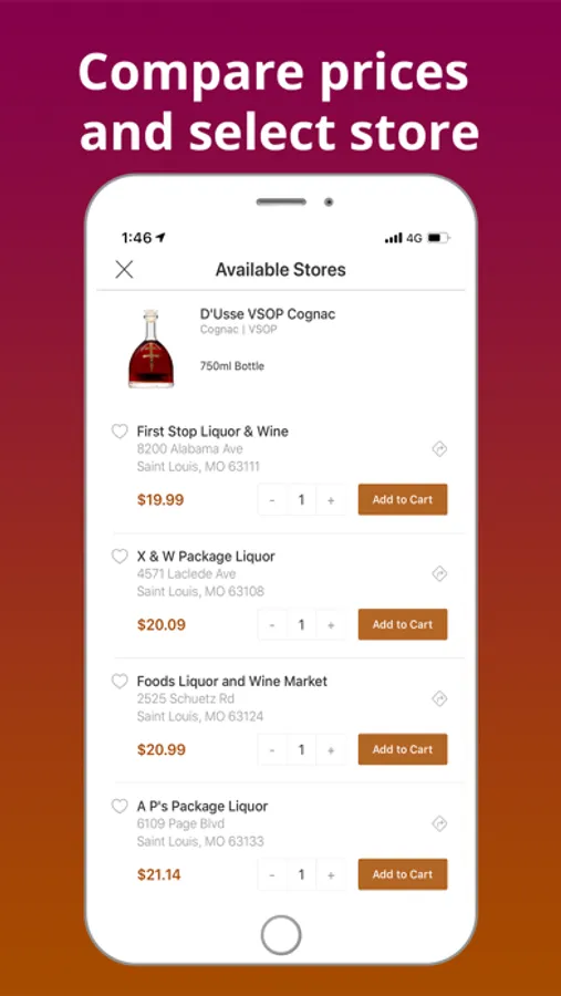 - Once you select a product, you get a list of liquor stores where that product is available. You can select liquor store to order the product