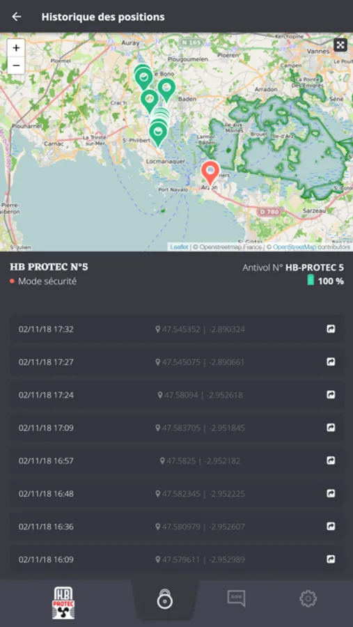 Retrouvez sur une carte la position GPS de vos antivols. L'application vous alerte également en cas de déplacement suspect.