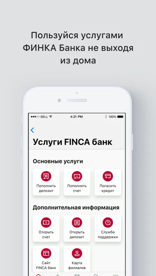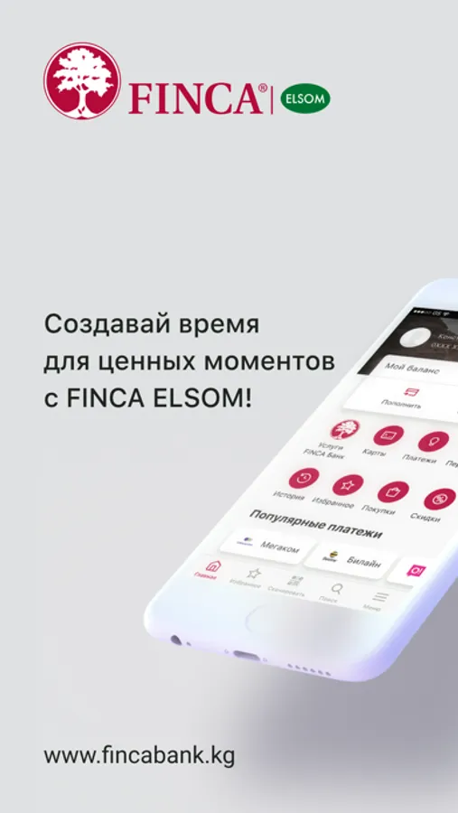 С помощью FINCA ELSOM вы можете совершать банковские операции без посещения офиса банка: погашать кредиты, пополнять депозиты и расчетные счета FINCA Банка.