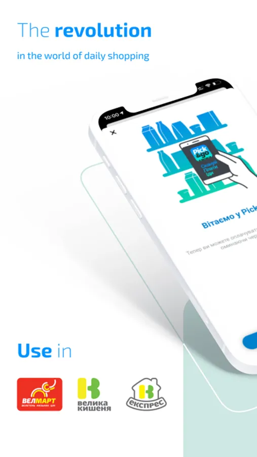 Pick & go mobile application for convenient and quick purchases in Velmart and Velyka Kishenya stores.