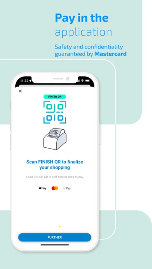 ● Tap pay and scan the finishing QR code on the self-checkout checkout screen.