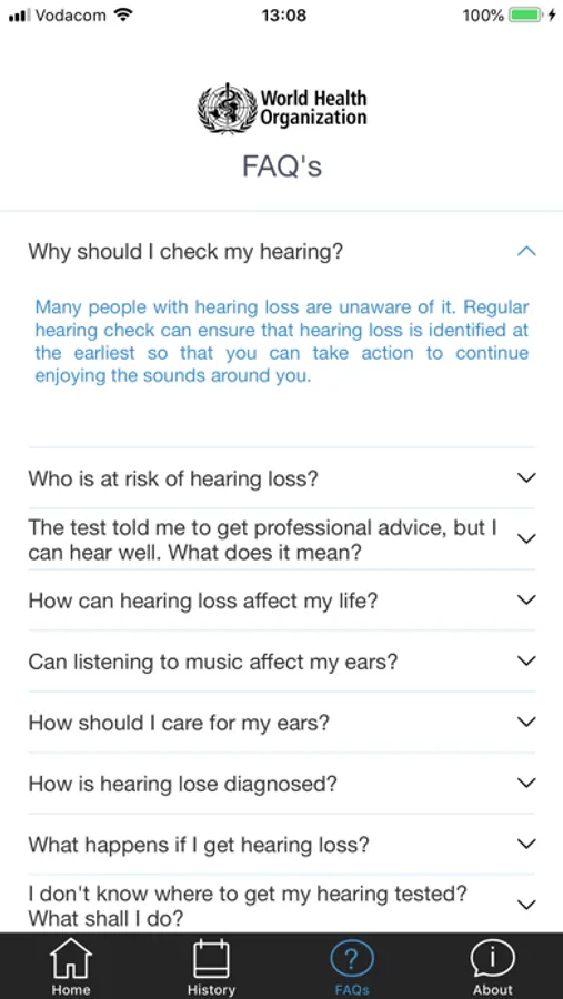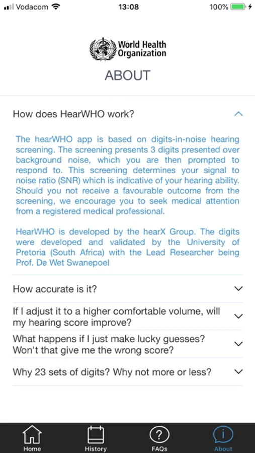4. The WHO and hearX Group will not be held responsible or liable for any results that are incorrect or for your use of the application.
