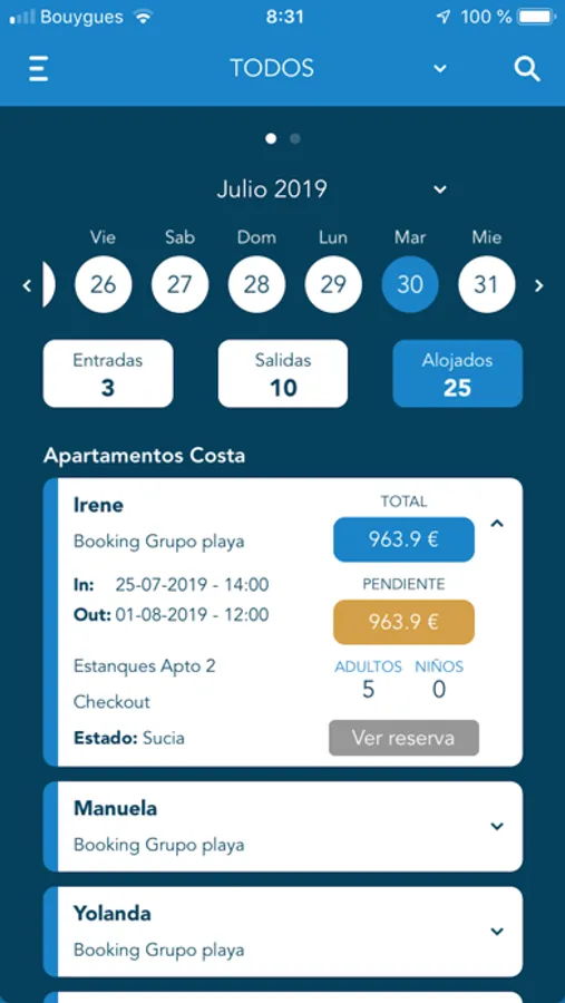 - Consultar las entradas y salidas de tus huéspedes día a día.
