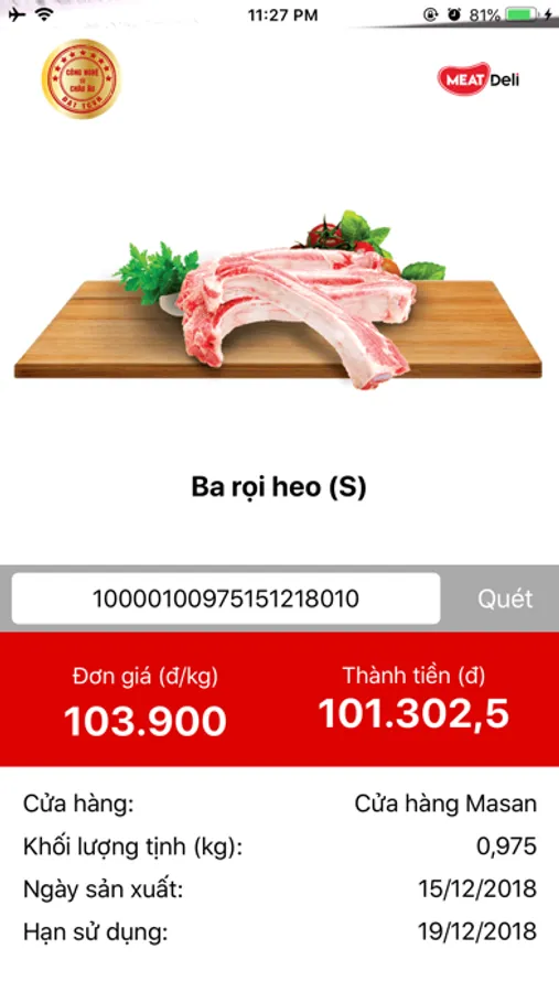 * Display QR code, Barcode on the screen along with production name, weight, unit price and total price of the Meat Deli pack
