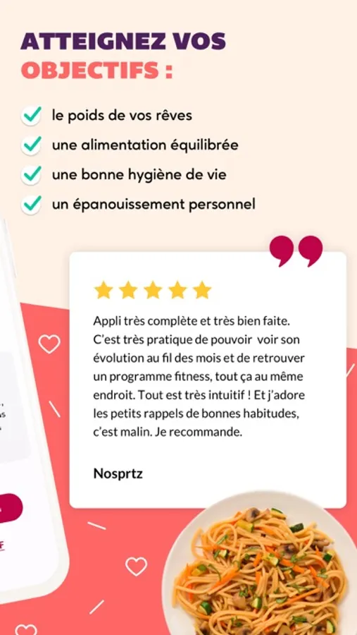 Votre succès est au cœur de nos préoccupations ! L’alimentation joue un rôle prépondérant dans l’atteinte de vos objectifs mais l’activité physique, le sommeil et la gestion de votre bien-être sont tout aussi essentiels pour maintenir votre poids de forme sur la durée. Adoptez de bonnes habitudes en seulement quelques jours grâce aux notifications envoyées à des moments clés de la journée. Trouvez, parmi les 36 bonnes habitudes, celles qui vous correspondent pour « bien manger », « bouger plus » et « vous sentir bien ».