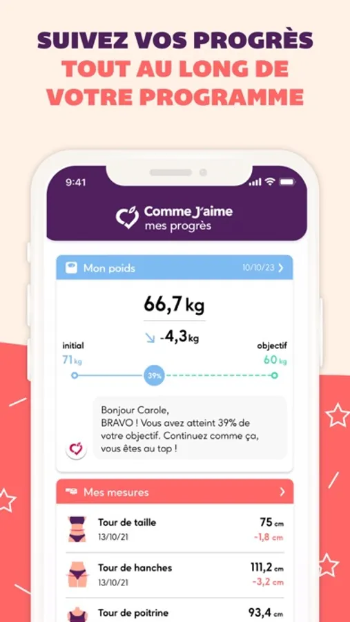 En complément des séances avec votre coach en diététique, l’application COMME J’AIME est LE soutien indispensable à votre projet de perte de poids.