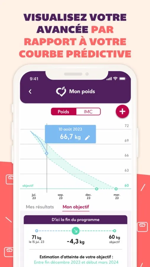 Et grande innovation depuis la V.6 : découvrez notre algorithme de prédiction de perte de poids qui vous offrira une vision claire de votre parcours à venir.